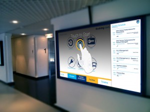 Het personeel dat naar Amsterdam komt voor trainingen kan via de schermen interactief informatie vinden over de trainingen, Booking, Amsterdam en andere praktische zaken.